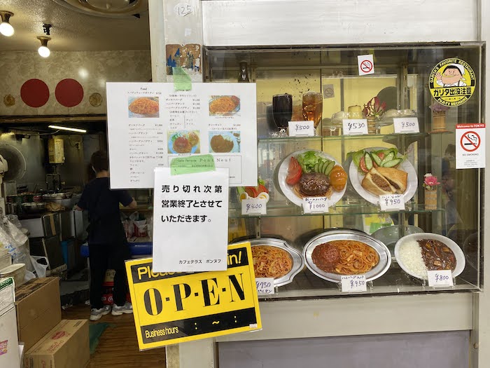 メニューはシンプルです。私が滞在している間にカレーやハンバーグサンドといった変化球のオーダーは一切なく、スパゲティ・ナポリタン、あるいはハンバーグスパゲティのほぼ2択でした。