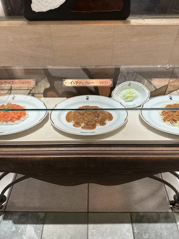 メニューは店舗によって異なっていて、丸の内店ではインデアンカレー、インデアンスパゲッティ、ハヤシライス、ミートスパゲティの4種類だけ。