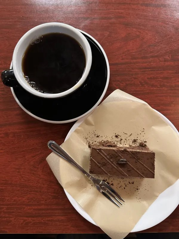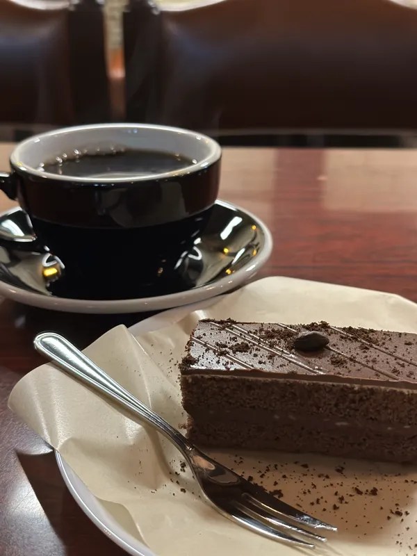 ▲こちらはブレンドコーヒーとザ・ロイヤルオペラ。チョコケーキです。