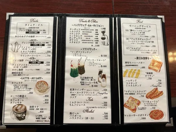 メニューの内容もフォントなども注意深く再現しようとしていますね。もしかしたら喫茶 郷のままと勘違いしているお客さんもいるかもしれないですね。